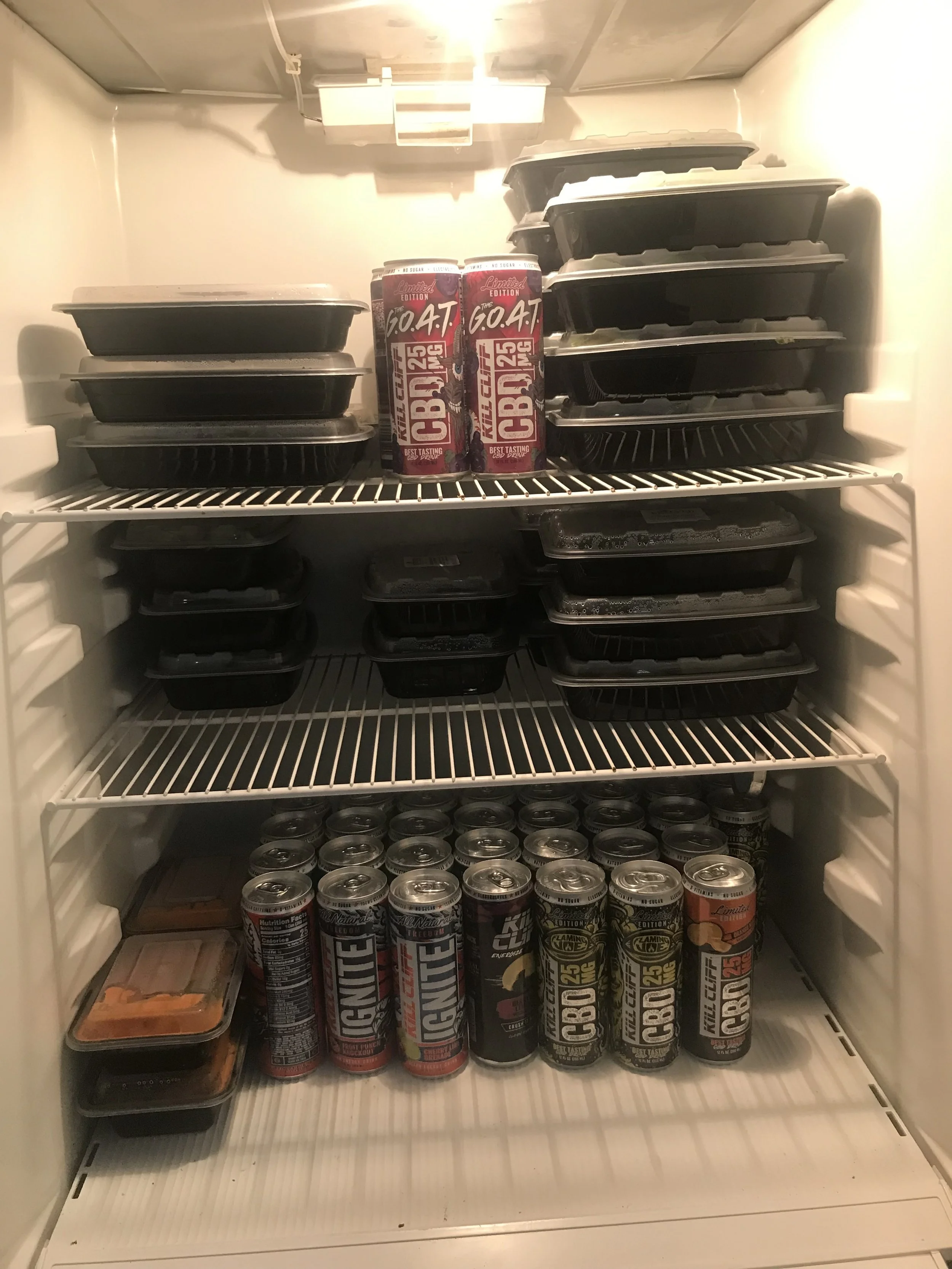 Fridge is stocked with Evolved Epicurean meals (restock on Thursday) and Kill Cliffs (regular, Ignite and CBD). Also, locally made fresh beef jerky and dried fruit. Ask me for details…